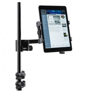 SUPPORTO PER PC Supporto per tablet PC con clip di fissaggio su stativo per accogliere apparecchi dell'altezza di 120-220 mm facile da montare e smontare grazie al sistema con molla clip...