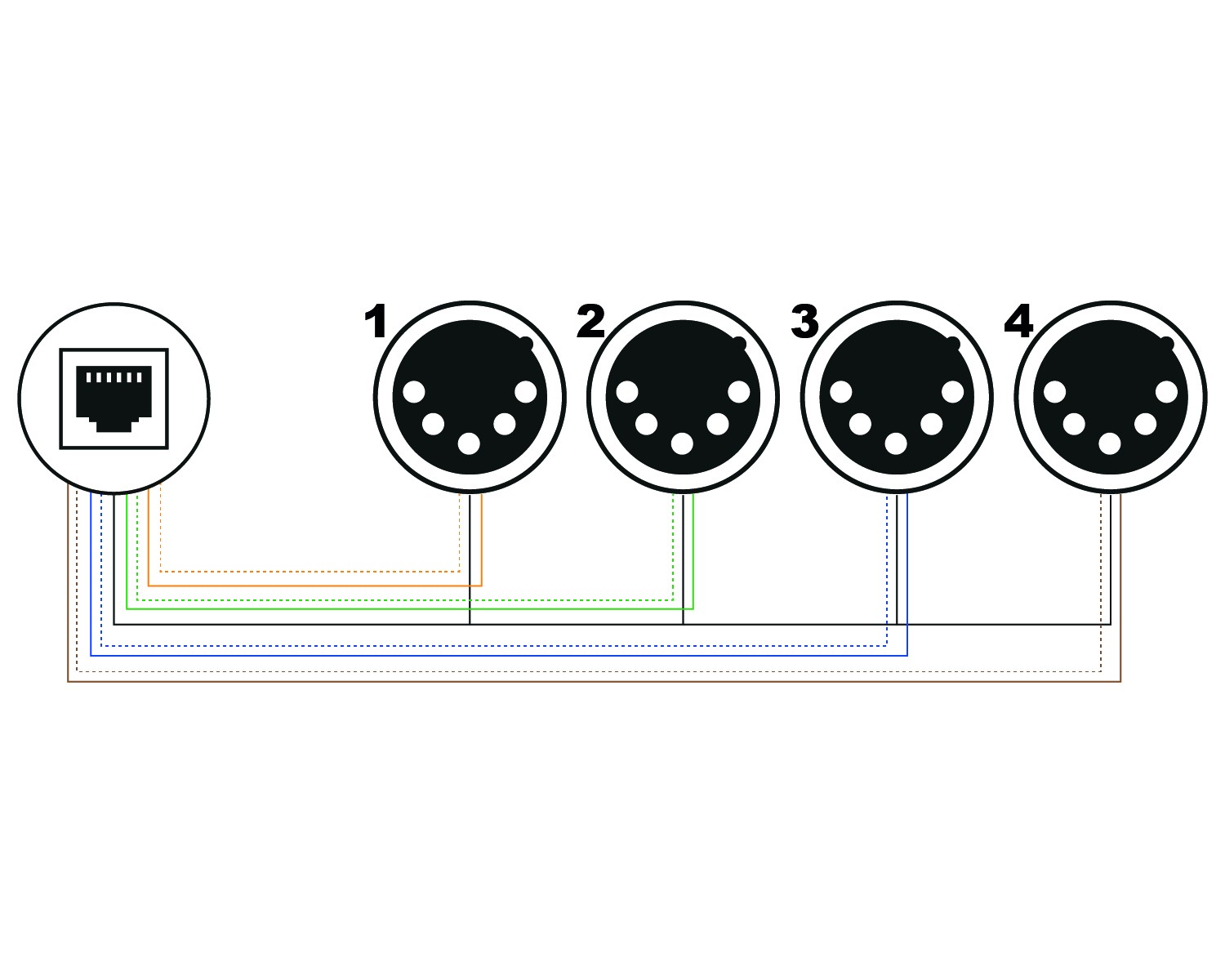 Cable box analogica a 4 canali xlr 5poli maschio - dmx