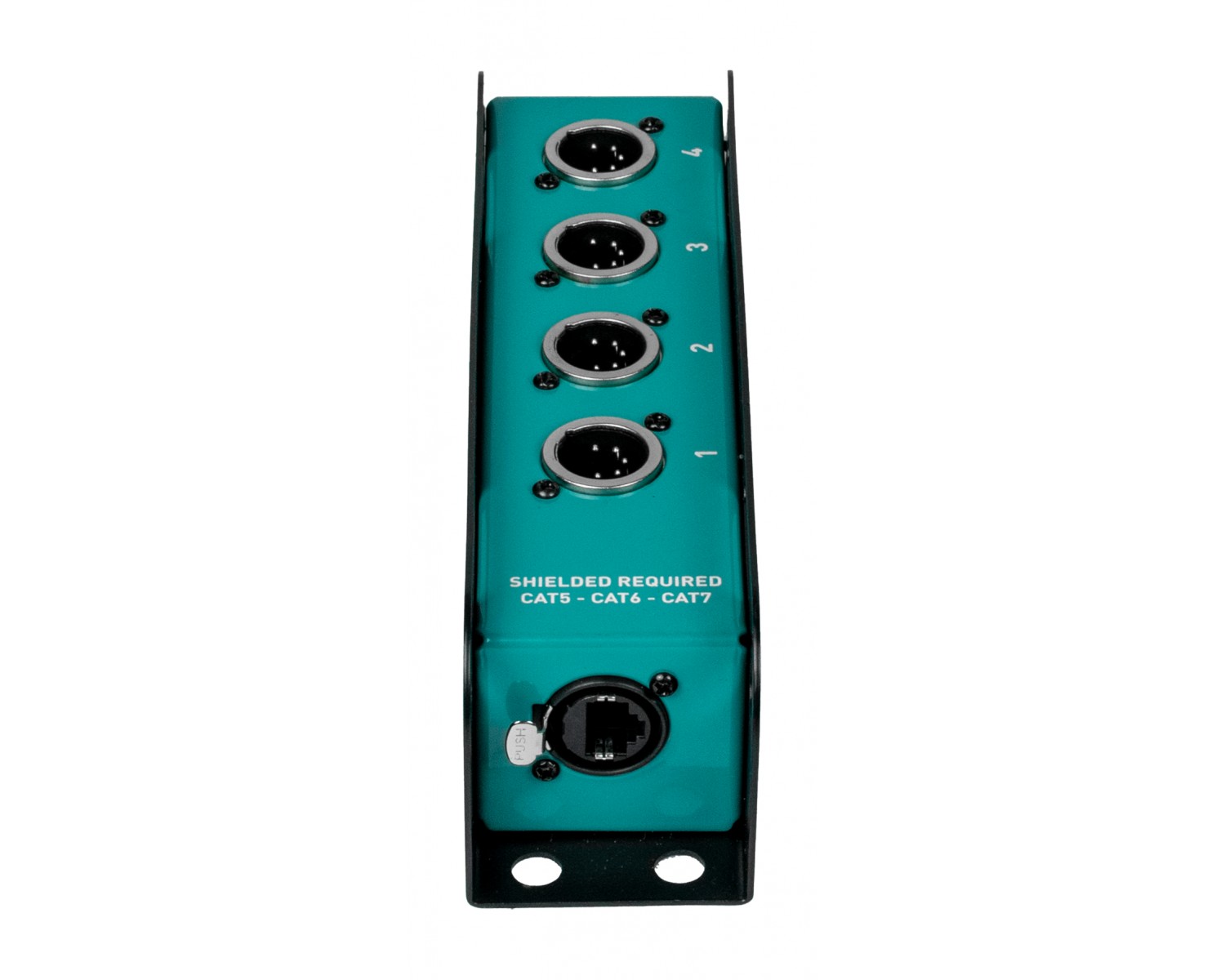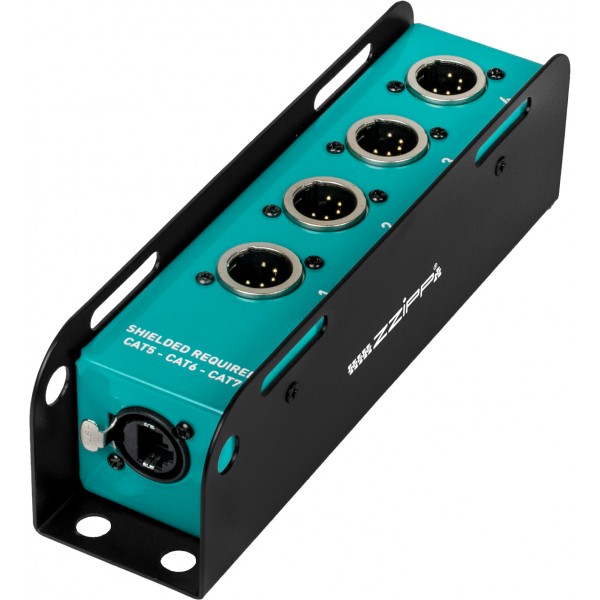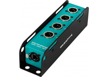 Cable box analogica con connettori XLR a 4 canali 5 poli, progettata per la distribuzione affidabile di segnali DMX. Il robusto chassis metallico garantisce un’eccellente schermatura elettromagnetica e protezione meccanica, mentre il cablaggio interno assicura continuità di segnale e lunga durata. Grazie al formato compatto, facilita il patching ordinato riducendo l’ingombro sul palco o nel rack ed è disponibile in più configurazioni  per soddisfare le esigenze specifiche di routing. Per un corretto funzionamento è necessario un cavo CAT dotato di connettore metallico schermato.