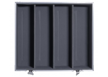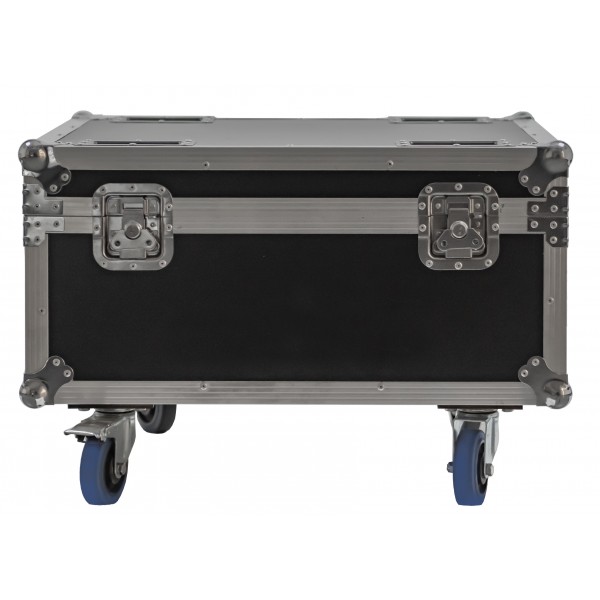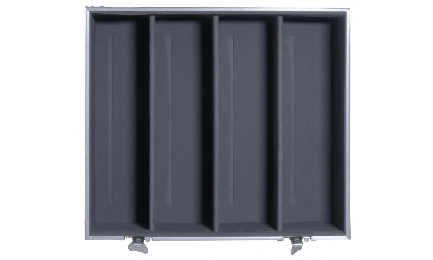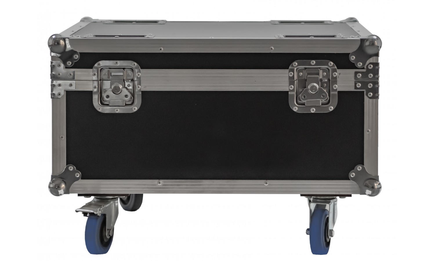 Robusto flightcase in multistrato di betulla rivestito con copertura antigraffio nera opaca. Design esclusivo e funzionale, ospita 4 macchine SCORPIO400.