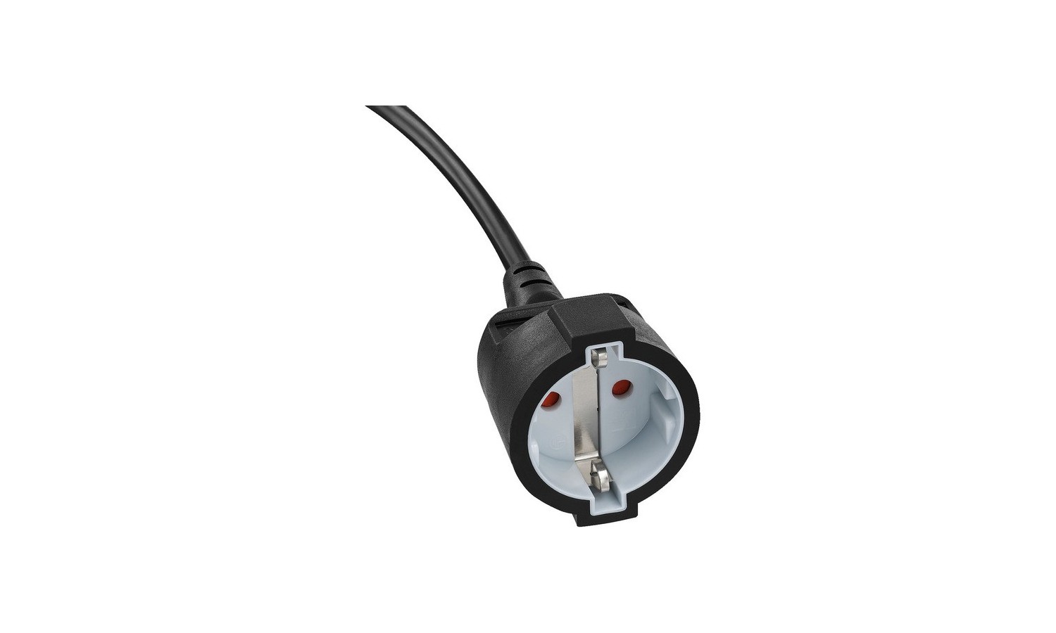 • Ingombri ridotti grazie alla spina piatta ad angolo retto con contatto di terra e estremità girevole