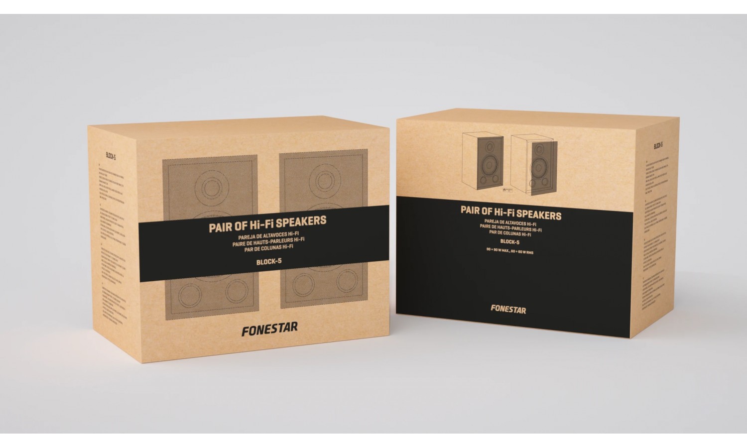 Progettate interamente da FONESTAR con componenti di alta qualità, presentano una robusta costruzione in legno MDF rivestito in PVC nero e un'estetica ideale per integrarsi in qualsiasi arredamento.