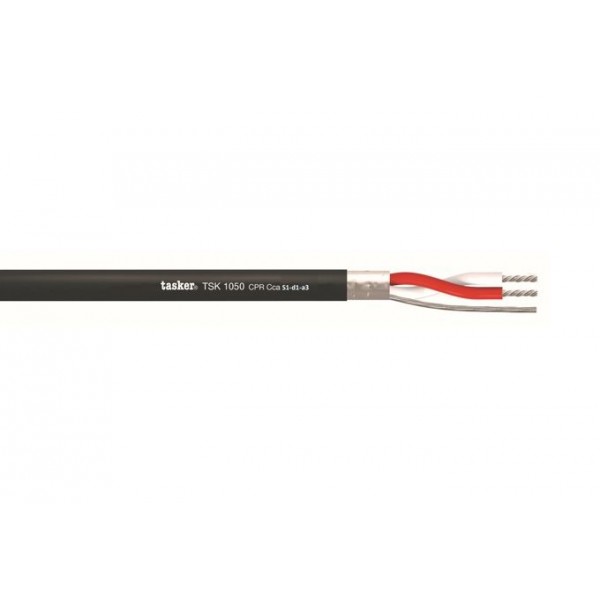 La sua struttura robusta e compatta, con un diametro esterno di Ø 6,20 mm, è ideale per installazioni interne. Il cavo è composto da due conduttori isolati, uno rosso e uno bianco, con una sezione nominale di 2x0,35 mm² e schermatura in alluminio. Il prodotto è inoltre conforme alla direttiva RoHS3.