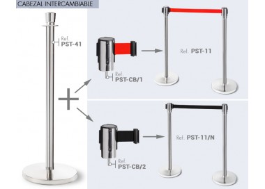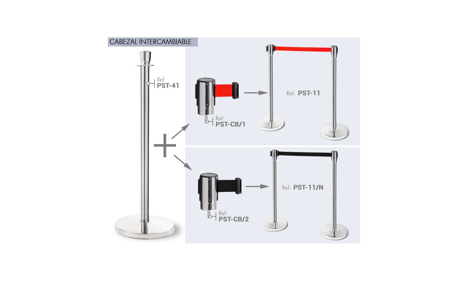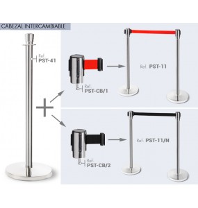 Il design speciale con testa intercambiabile permette di sostituire la testa per cordone con una per nastro retrattile rosso o per nastro nero. In questo modo avremo 3 tipi di colonnine diverse utilizzando un unico palo separatore e 2 teste extra. Questo pratico design permette di ridurre costi e spazio di magazzinaggio (non è necessario disporre di tante unità). Allo stesso modo, se si necessita di sostituire alcuni componenti, questi possono essere richiesti indipendentemente (base, asta, testa) - Non dovrai acquistare un palo nuovo!