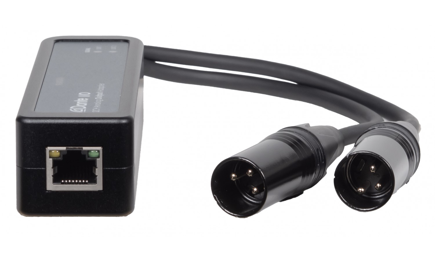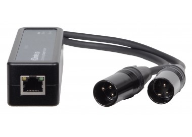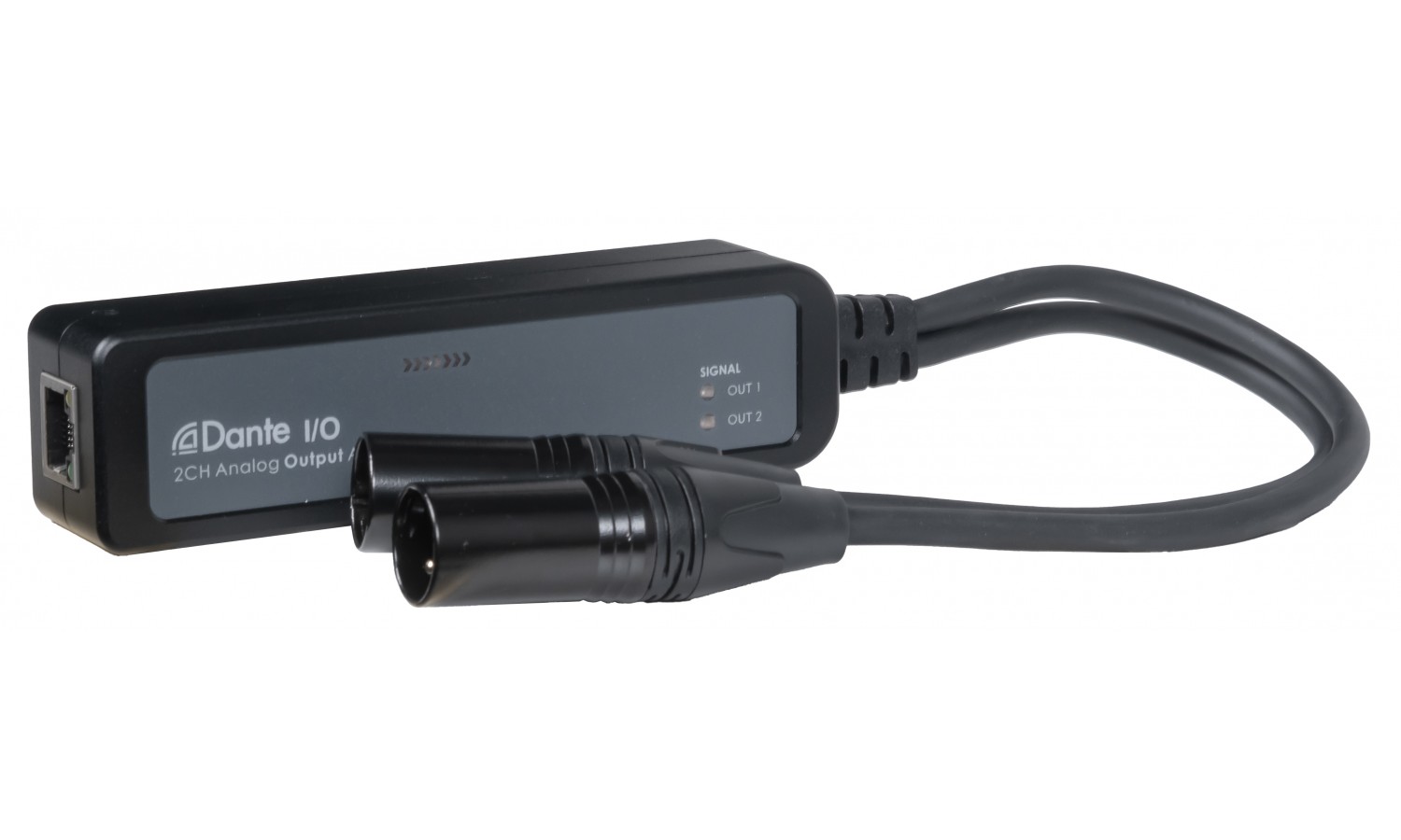 Dotato di due connettori XLR maschio standard per inviare l'audio ad amplificatori o altoparlanti dalla rete Dante. Design compatto e prestazioni elevate, alimentato tramite PoE.