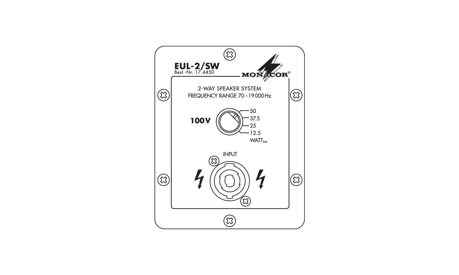 - con un collegamento in parallelo, questo altoparlante può essere inserito in ogni impianto con uscita audio 100 V nuovo o esistente, se l'amplificatore dispone della potenza necessaria!