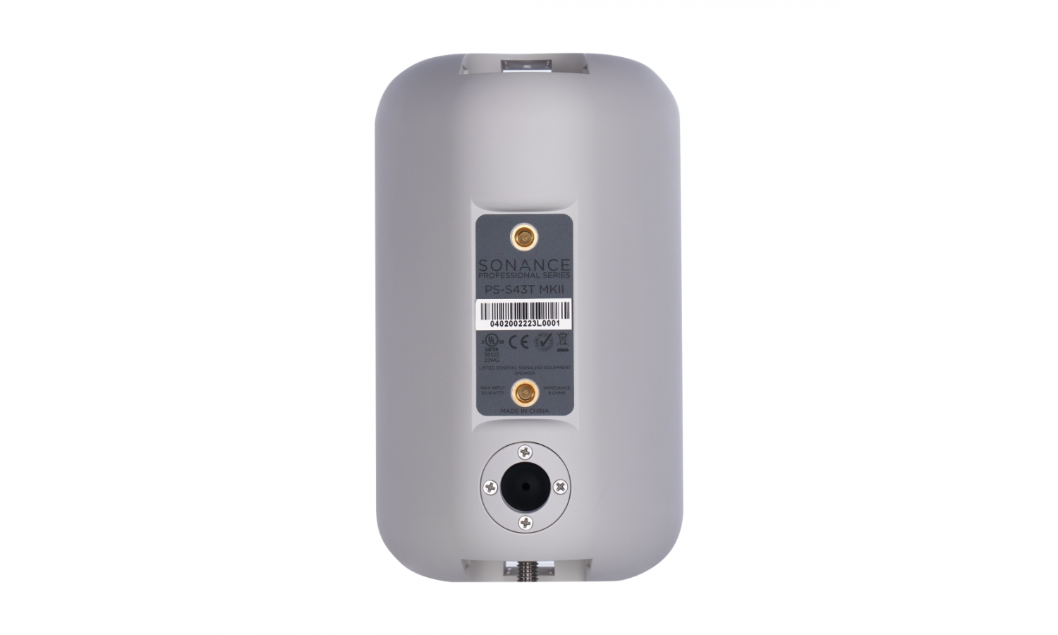 Il diffusore da parete a due vie Sonance PS-S43T della Professional Series è dotato di un woofer da 4" (100 mm) ad alta escursione e di un tweeter da 1" per un suono pulito e accurato. La cassa, resistente alle intemperie e con grado di protezione IP45, include il sistema di staffe Fast-Mount® di Sonance e una connessione frontale per i cavi, che accelera il processo di installazione e garantisce un aspetto minimalista. Le certificazioni UL1480 e UL2239 assicurano durabilità e sicurezza per l'uso professionale.
