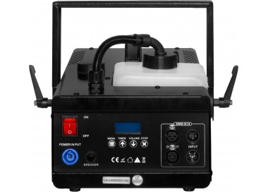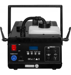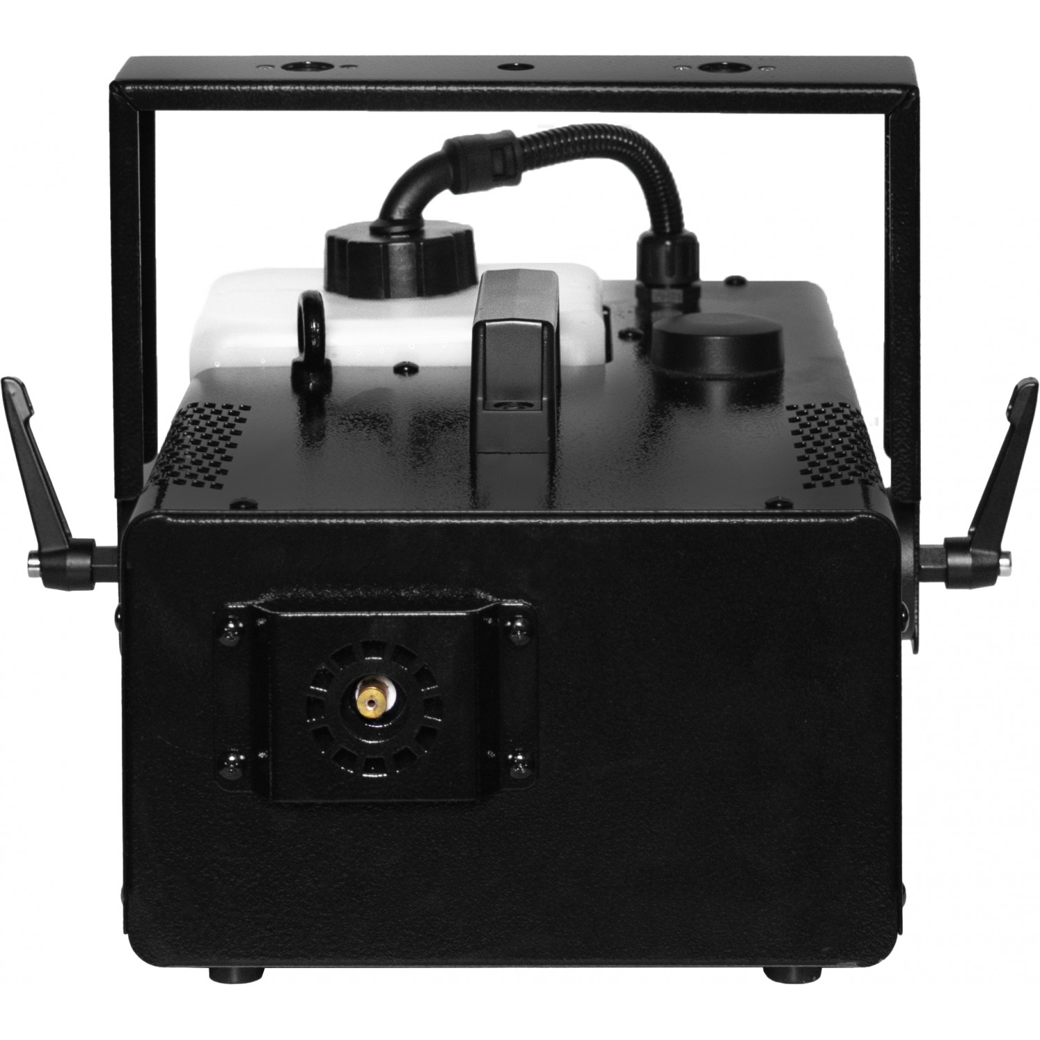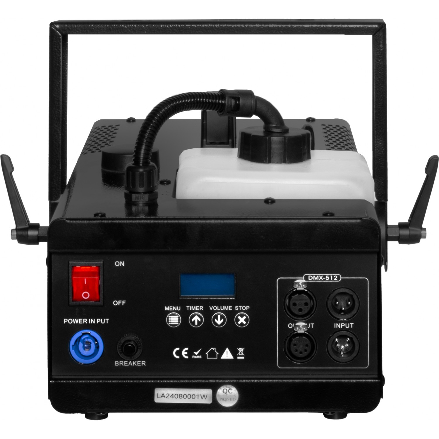 La macchina è dotata di connettori XLR a 3 pin e 5 pin per garantire massima compatibilità e di ingresso PowerCON TRUE. L'interruttore di accensione è illuminato per una facile individuazione, e il serbatoio del fluido è provvisto di controllo del livello con una chiara indicazione quando il serbatoio risulta vuoto.
