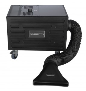Utilizza semplicemente acqua nebulizzata combinata con normale liquido per fumo, garantendo il massimo effetto scenografico con il minimo dispendio di mezzi. Il tubo fornito in dotazione consente di posizionare la macchina anche lontano dal punto effettivo di erogazione, offrendo così la possibilità di diffondere il fumo da angolazioni diverse utilizzando un'unica macchina. Il funzionamento è estremamente semplice e non richiede ghiaccio secco o costose bombole di CO₂.