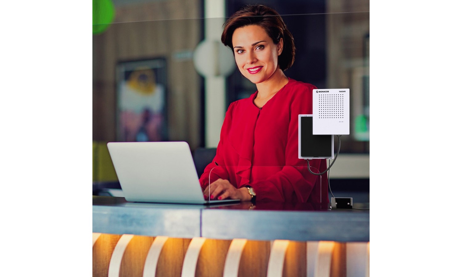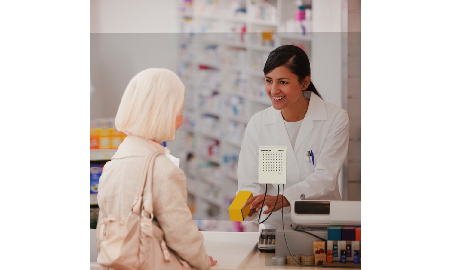 TALKSAFE garantisce una comunicazione chiara e comprensibile alle casse, banchi informazioni, ecc. Nonostante la distanza di sicurezza, le pareti igieniche e le maschere facciali.