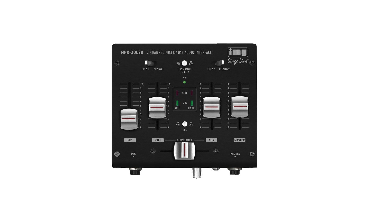 - 2 canali d'ingresso stereo, commutabili Line/Phono e USB/Line/Phono