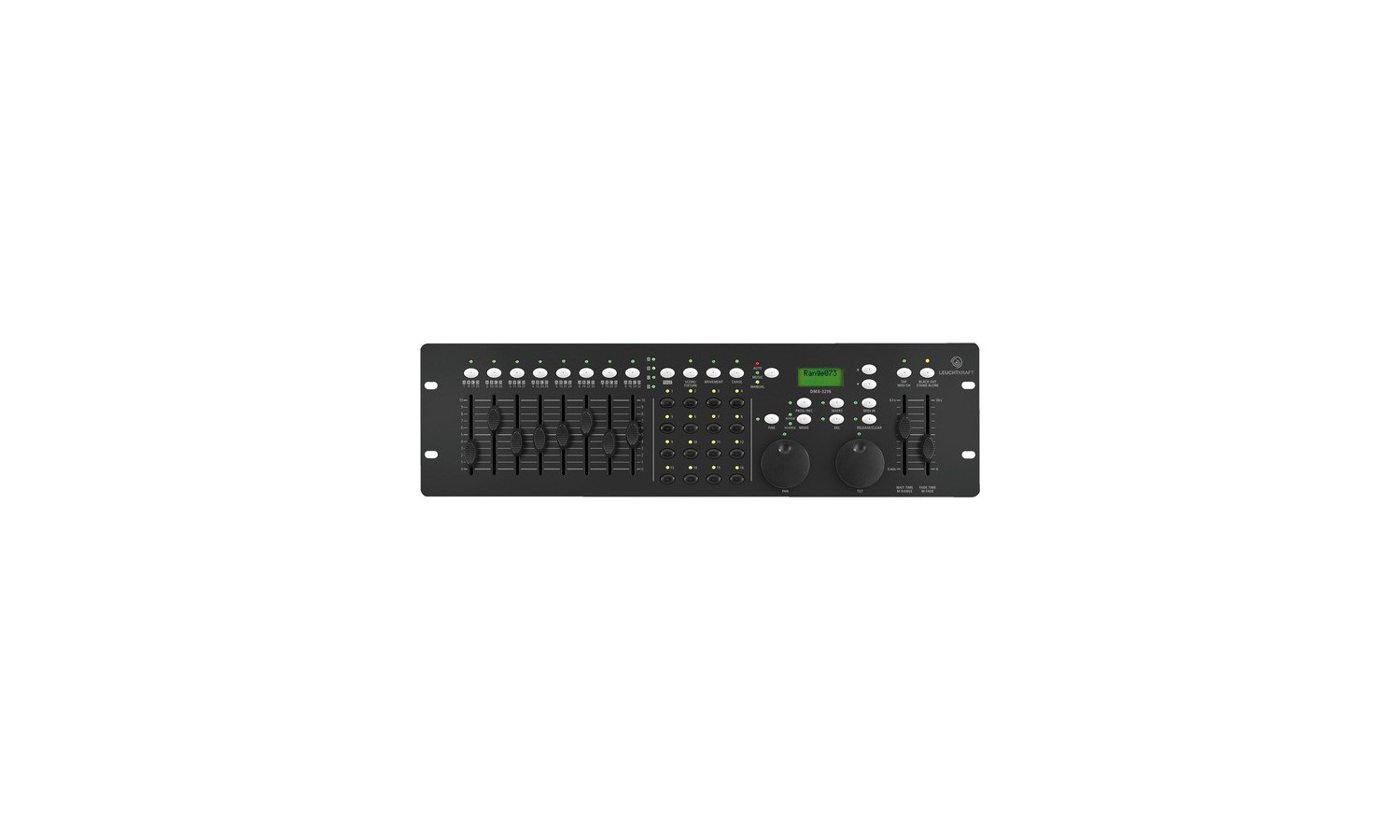 | Collegamenti | 1 x XLR a 3 poli (DMX-Out), 3 x DIN a 5 poli (MIDI), 1 x RCA (Audio-In), 1 x presa USB-A |