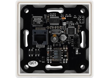 Pannello di controllo/regolatore di sistema MondeF con 6 pulsanti, compatibile con la serie AS500 di Jung. Quando è collegato a una rete esistente, il controller sarà identificato automaticamente tramite il software MondeF e sarà integrato nella rete. Il controller dispone di 6 pulsanti programmabili. Le funzioni dei pulsanti possono essere regolate individualmente tramite il software MondeF. Fornito con loghi per etichettare i pulsanti con le funzioni più utilizzate. Incluso l'intarsio MONACOR vuoto. Jack RJ45 PoE per l'alimentazione e il collegamento alla rete.
