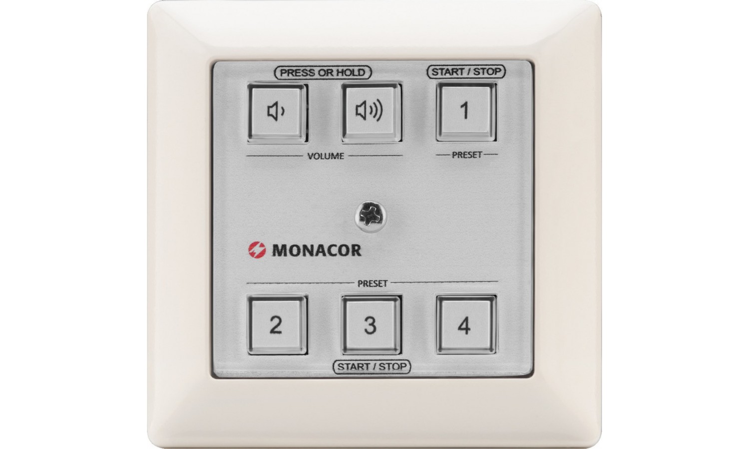 Fornito con intarsio 'MONACOR' e vari loghi per l'etichettatura delle funzioni dei pulsanti