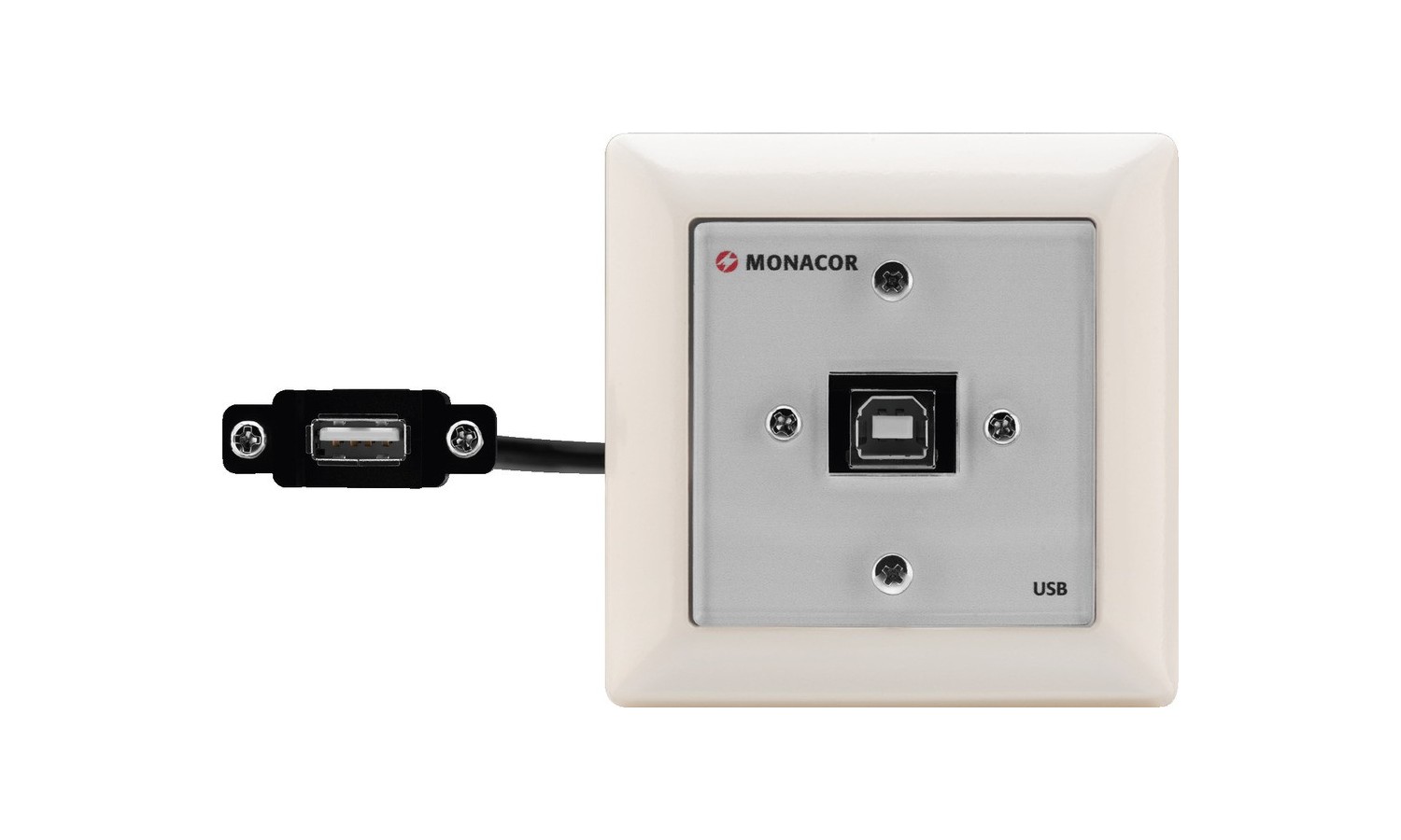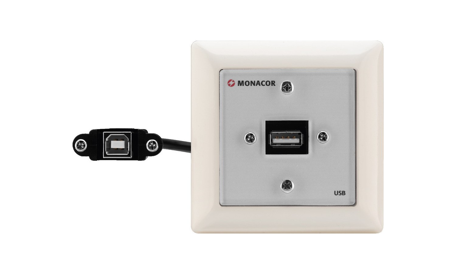 Modulo da parete MondeF USB Type-A/USB Type-B, per montaggio ad incasso.