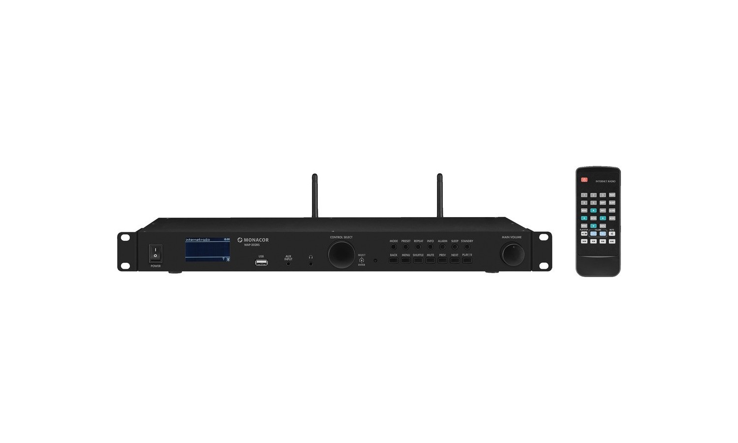 Fornito con telecomando a infrarossi, antenna a stelo e antenna a filo FM