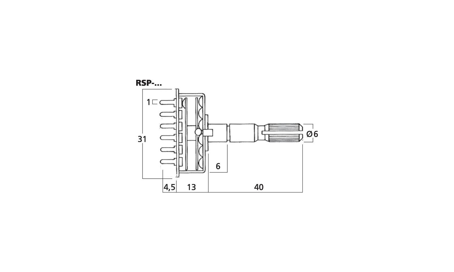 Commutatore rotativo albero: 6 mm x 40