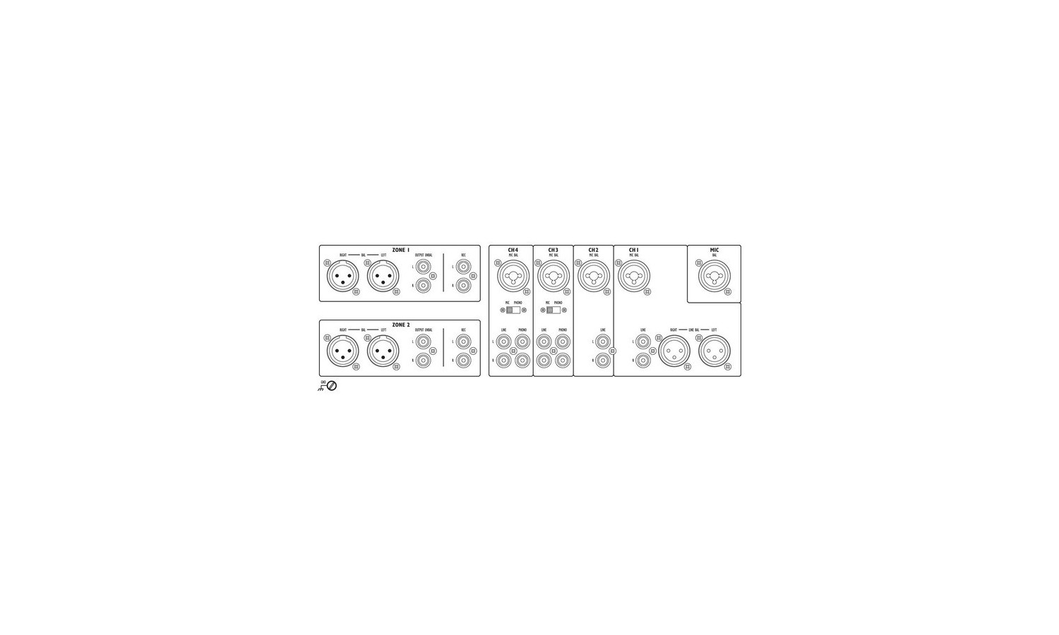 | Ingresso mic | 1,5 mV, 5 x XLR a 3 poli/jack 6,3 mm |