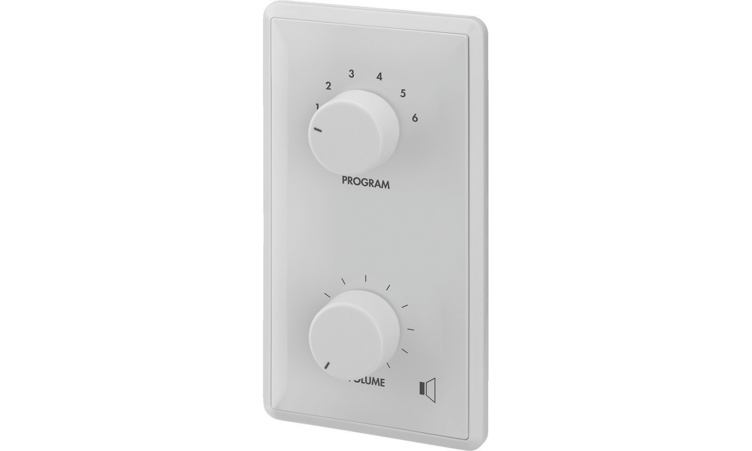 Regolazione del volume PA a parete con selettore di programma e relè di priorità di emergenza 24 V.