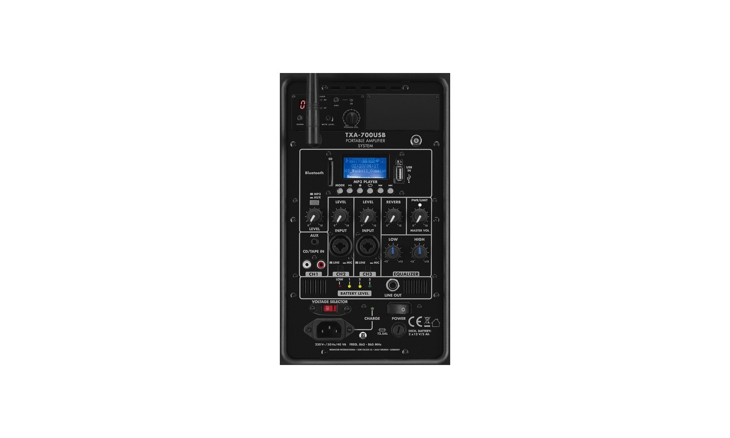 | Collegamenti | 2 x XLR/jack 6,3 mm (Mic/Line), 1 x RCA L/R (Aux), 1 x jack 3,5 mm (Aux), 1 x jack 6,3 mm (Line Out) |