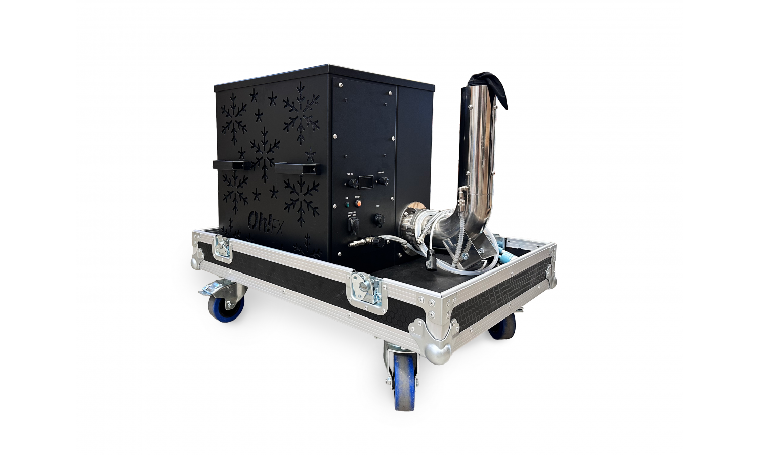 Trasforma qualsiasi spazio in un paesaggio invernale da sogno con la macchina Frozen Storm. Costruita specificamente per l'uso esterno e progettata per stupire, è l'opzione migliore per creare momenti nevosi magici, in modo sicuro e affidabile. La macchina include un tubo di prolunga flessibile lungo **10 metri**, espandibile fino a 20 metri o più a seconda delle esigenze dell'evento.