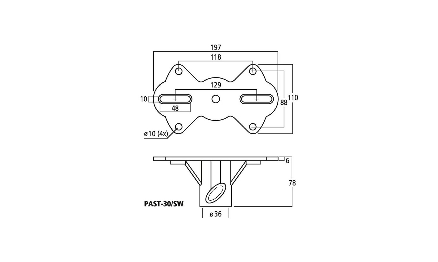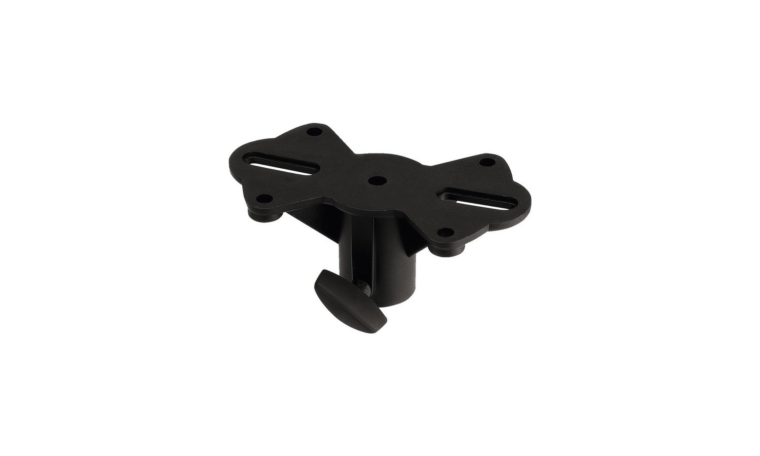 • versione particolarmente robusta rinforzata con nylon e fibra di vetro con 4 fori di fissaggio per le casse acustiche. Per la serie di stativi con diametro standard.