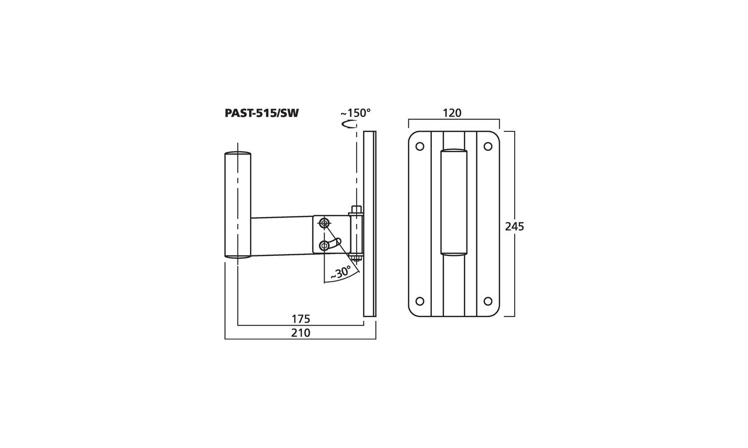 • distanza fra perno e piastra di montaggio: 175 mm