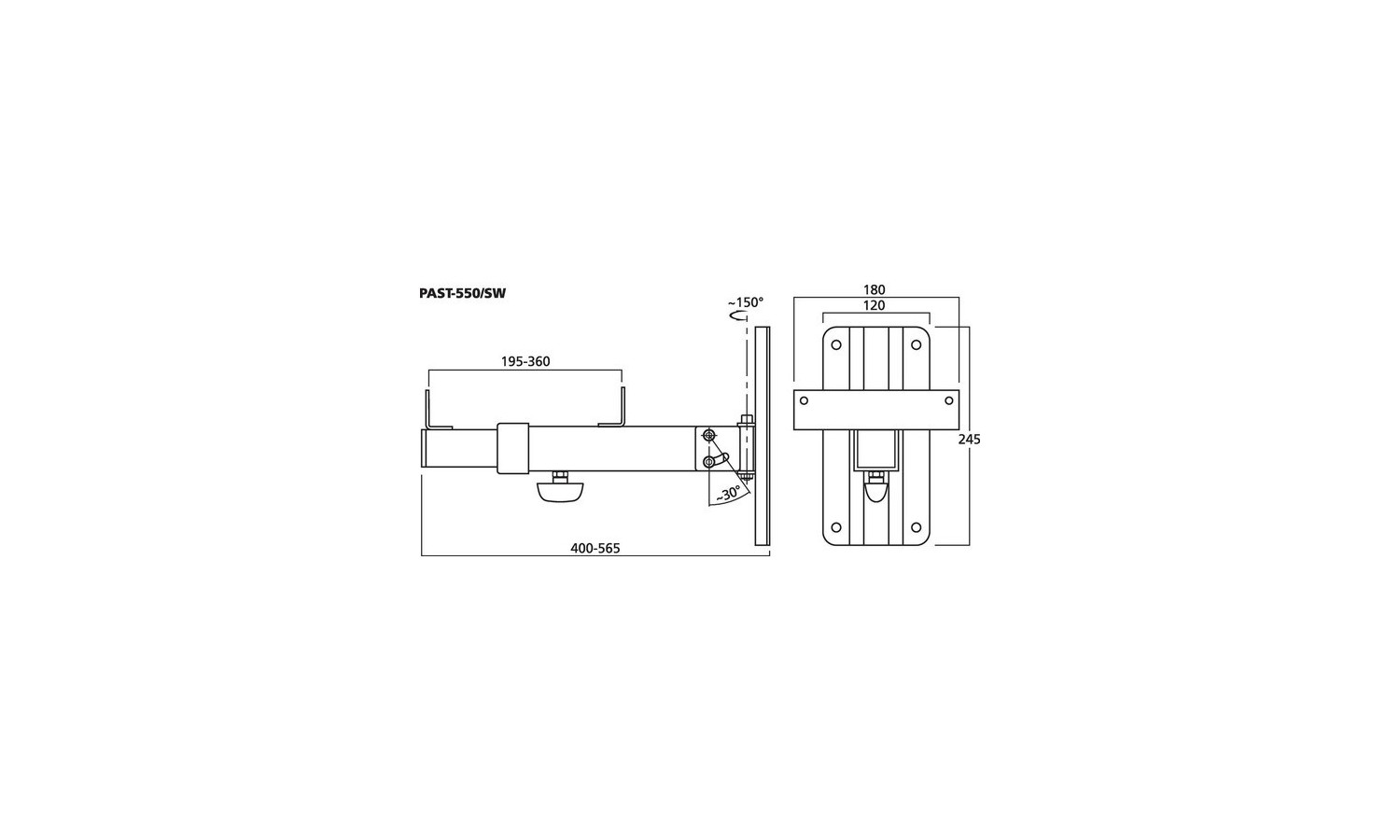 • girevole (ca. 150°) e inclinabile (ca. 30°)
