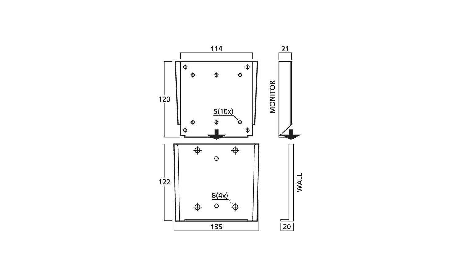 • consegna con viti per il fissaggio del monitor e con viti di montaggio per tasselli di 10mm (usare tasselli adatti al materiale della parete)