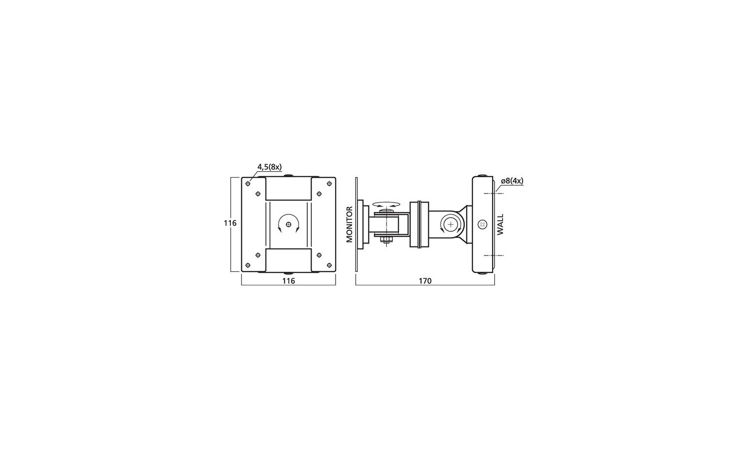 • consegna con viti per il fissaggio del monitor e con viti di montaggio per tasselli di 10mm (usare tasselli adatti al materiale della parete)